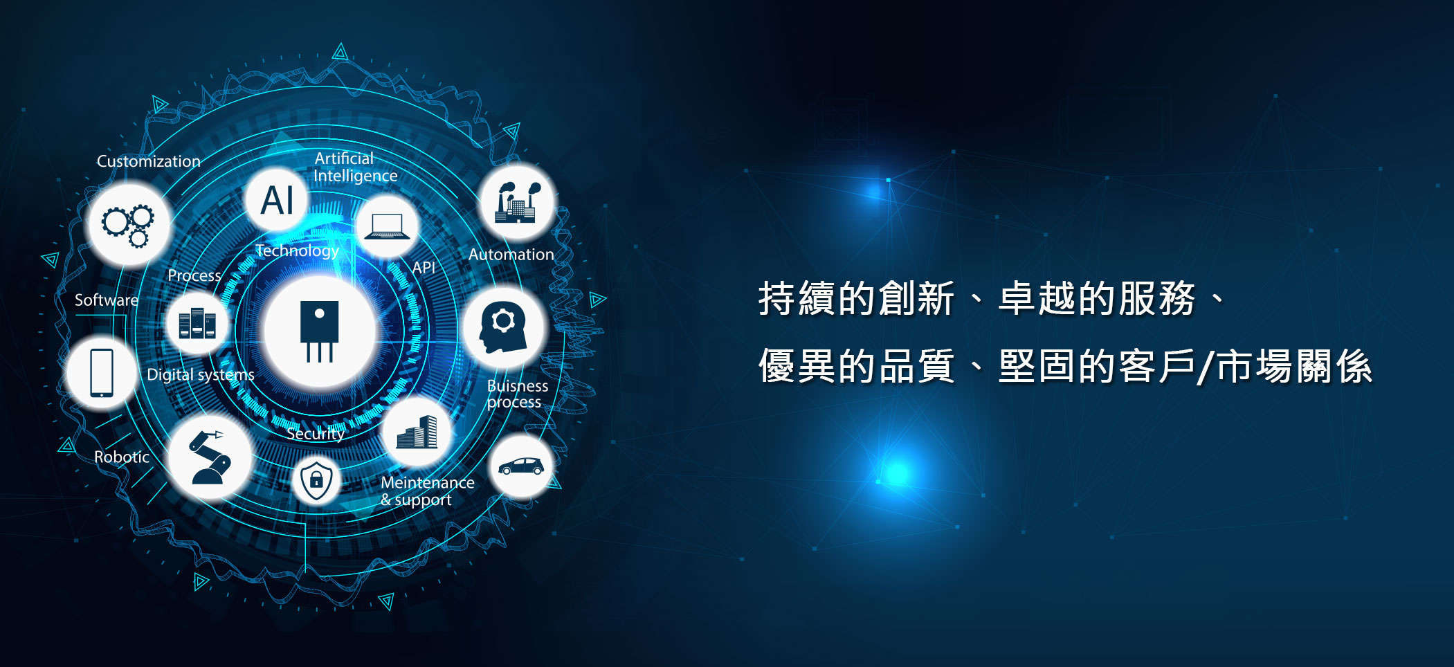 本公司努力開發第三代半導體相關應用於電源管理的IC元件,致力於增加電子產品的轉換效率和節能省碳的功效,進而提升成為世界級電源管理IC元件的品牌。